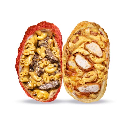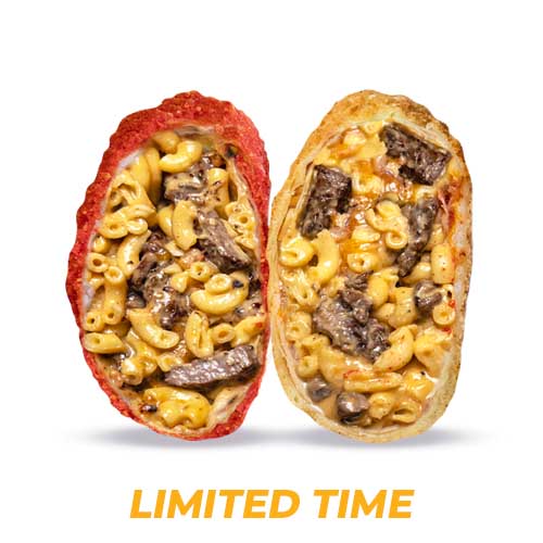 Fried burrito with Mac & cheese, grilled steak, scallions, melted cheese, bacon, double jalapeños, chili powder, sriracha, mango habanero, and fried in your choice of Flamin’ Hot® Cheetos® or Panko Fried.